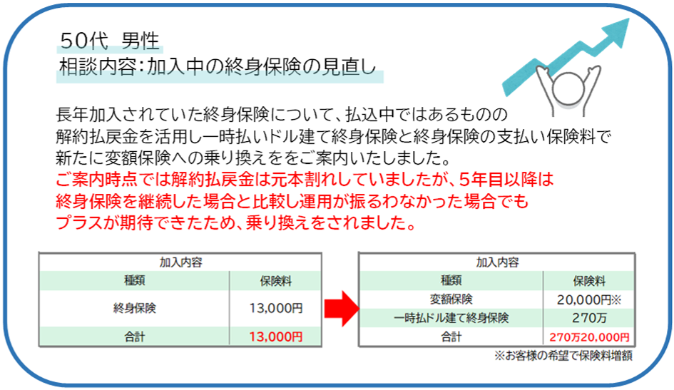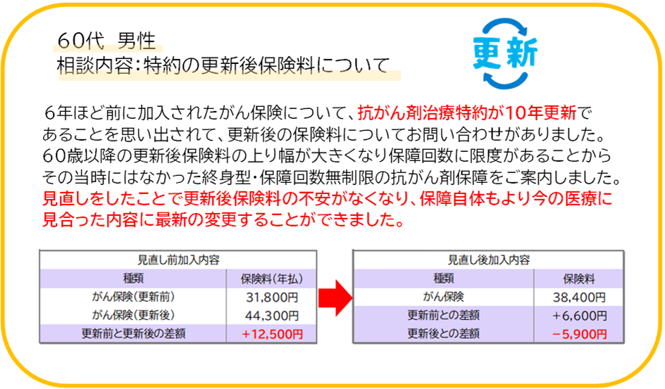 給付状況をお店で収集したデーターを元に必要保障の入れ替えを提案しています。